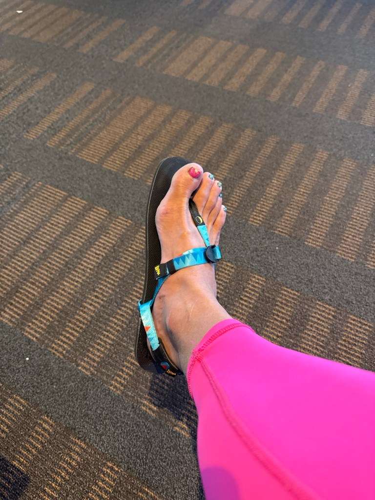 i still have toes recovering from wearing super shoes at my last race. i’m planning on wearing my thin venado sandals for this race.